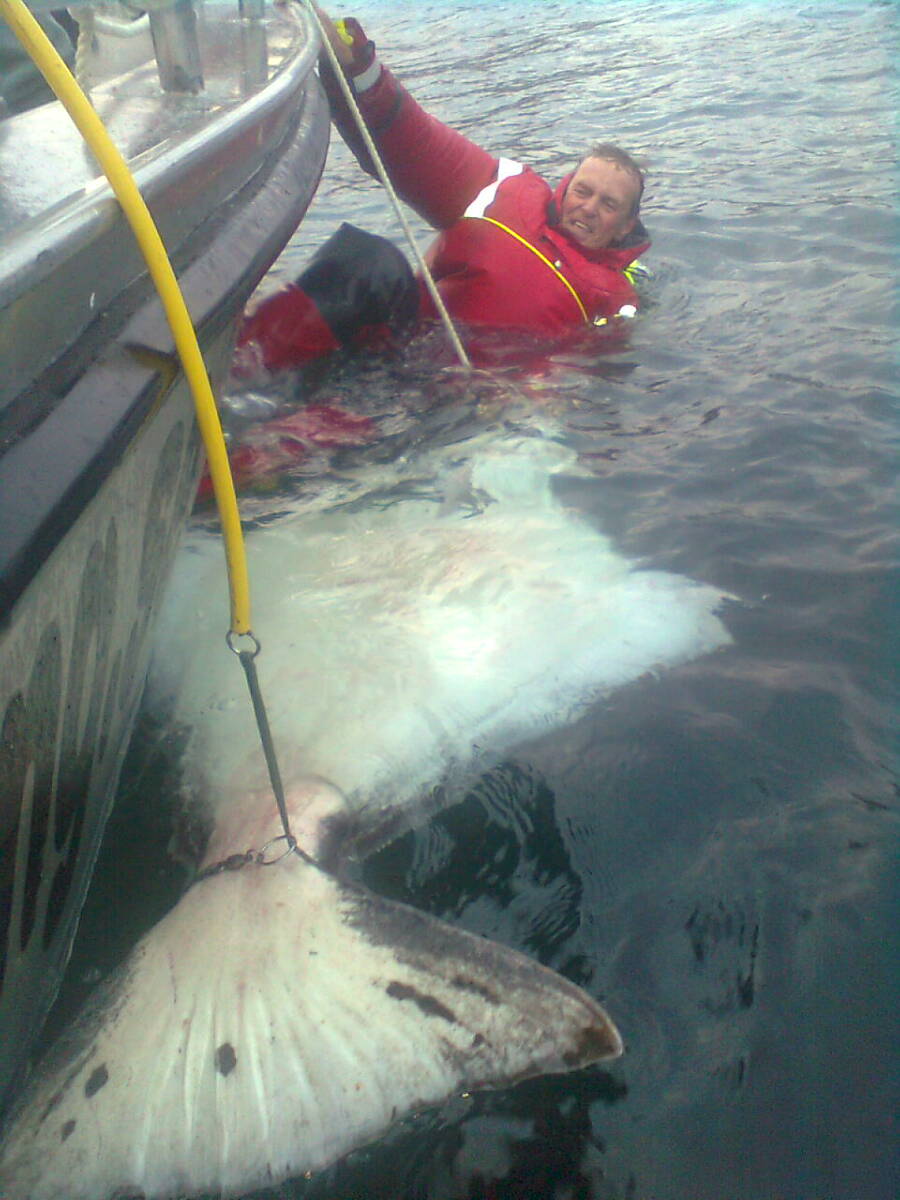 Chyteny bol v druhom fjorde - Soroya na hlbke 28 metrov. Zdolavany bol takmer dve hodiny, presne 1hod. a 50 min. na privlacovej udici. Maly pilker 150 gramov.