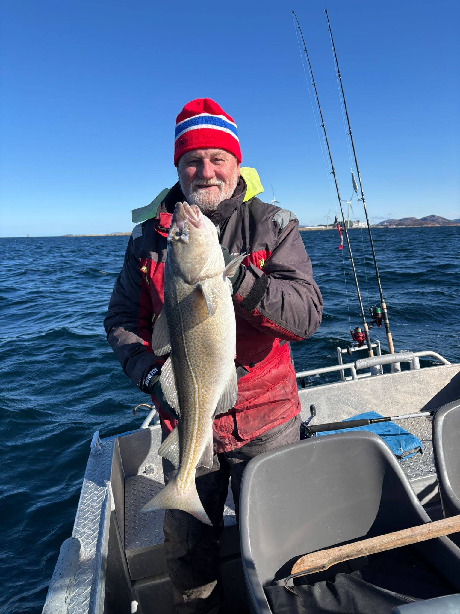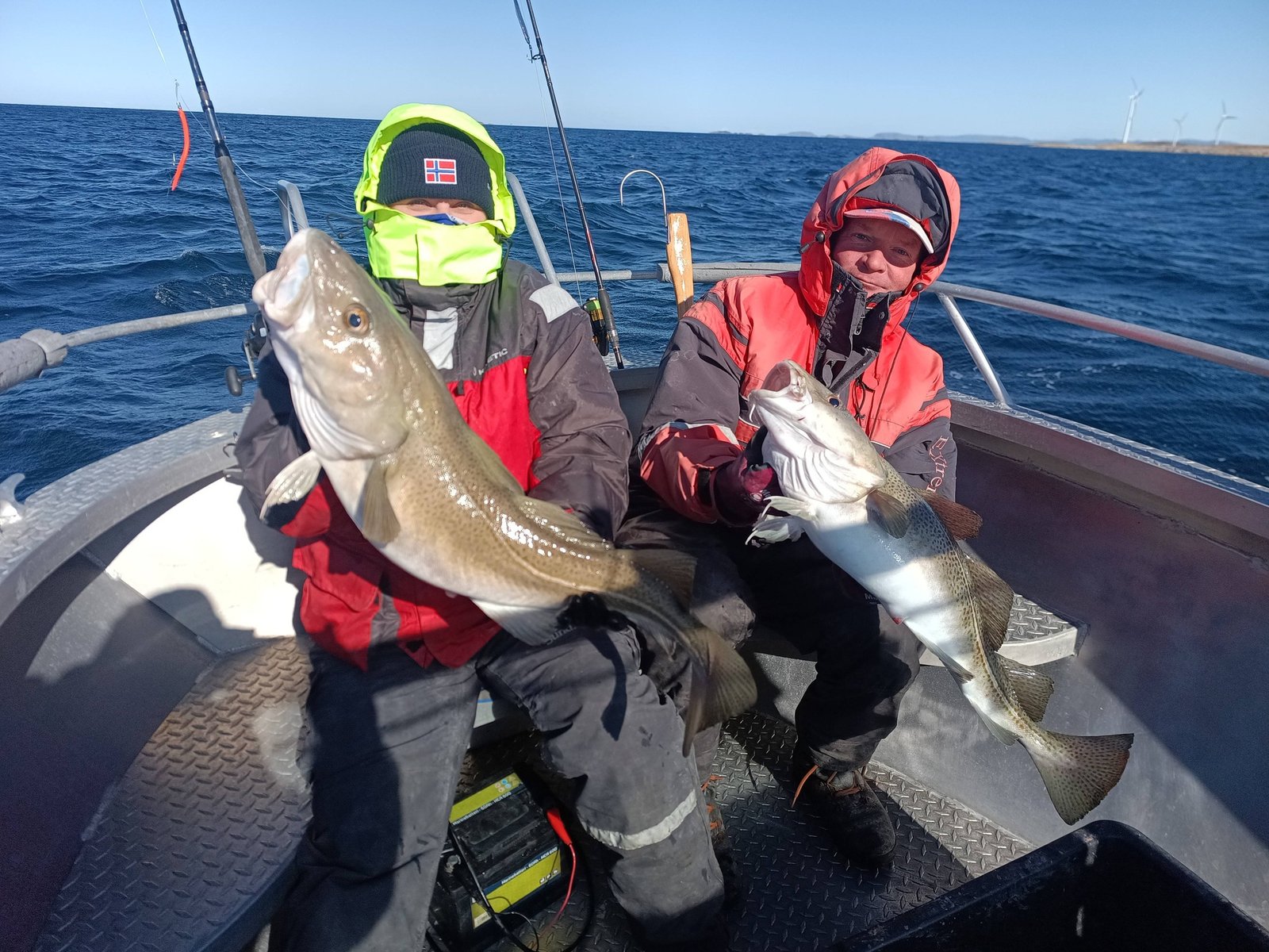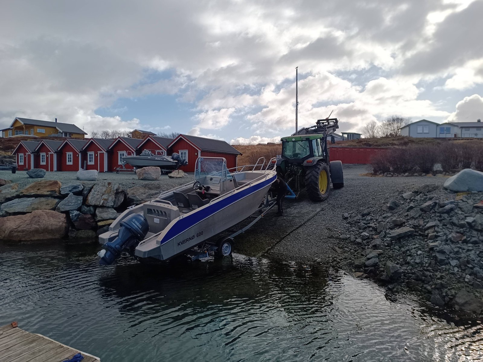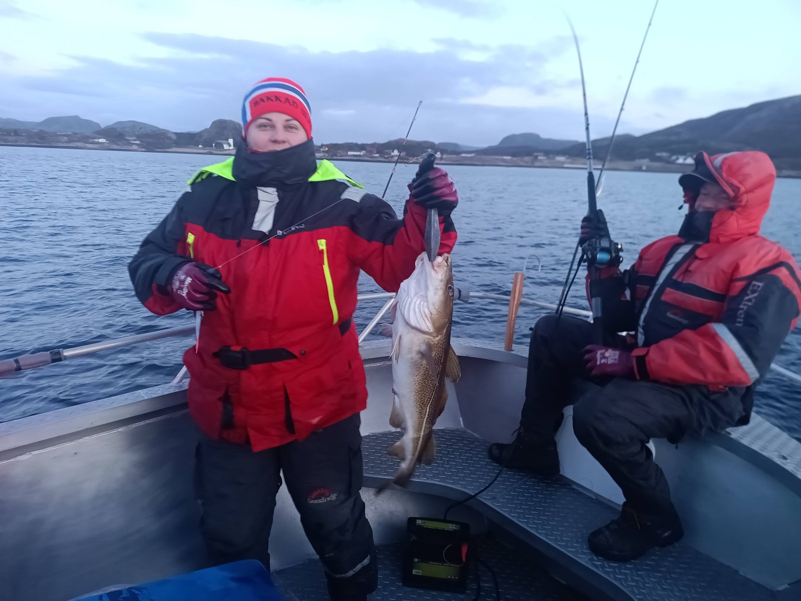 Lodě už se spouští na vodu Odpoledne nám trochu polevil vítr, takže jsme udělali aspoň zahajovací jízdu do fjordu. Vyzkoušeli jsme nářadí a pochytali pár menších tresek. Lucka nám zabezpečila chutnou večeři a teď šup do pelíšku.