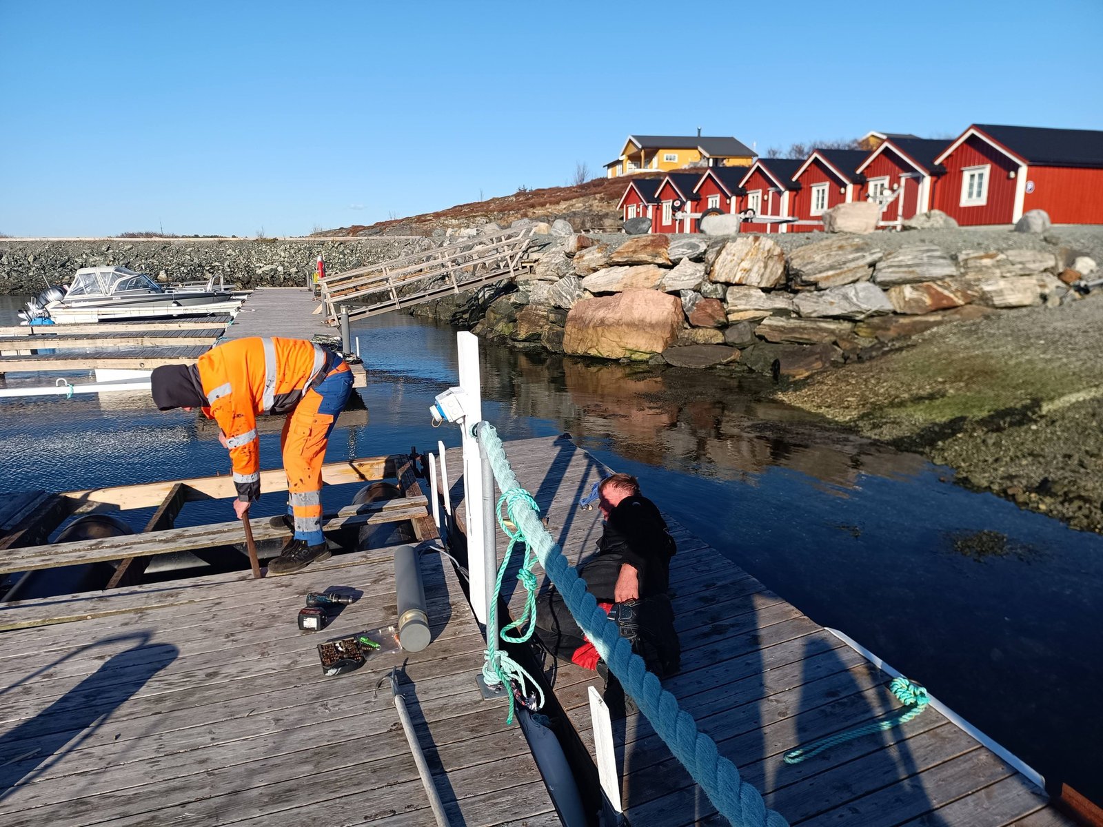Dvě lodě nám dnes brzy ráno vyjely do desítky větru zkusit štěstí do fjordu. Slušně se jim zadařilo,ale vítr stále sílil, takže za hodinku a půl už byli všichni doma. Já jsem se s Marečkem a Majem pověnoval přípravě lodí. Montovali jsme nové GPS na některé plastové lodě a odpoledne jsme začali s renovací mola. Zítra nás čeká dvacítka vítr, takže zase jen práce