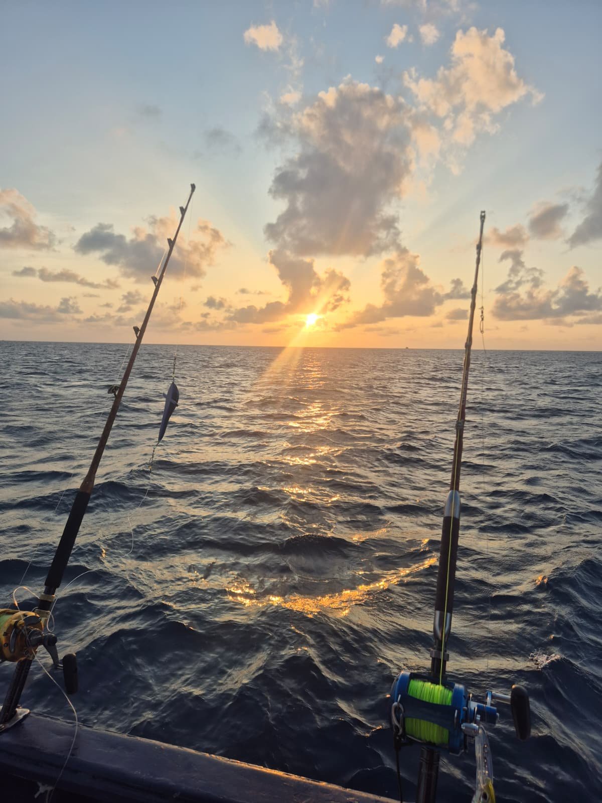 Dnes zatím jen jedno wahoo, ale vše se může změnit v noci, neboť loď právě zakotvila. Vše se připravuje na večerní rybolov. Zatím se daří jak přes den, tak i v noci.