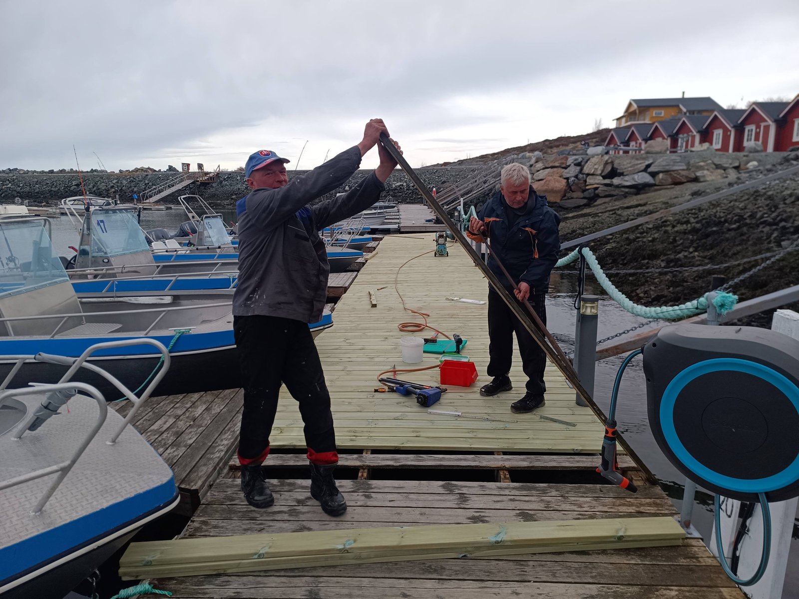 Dedo145ÚčastníkDvě lodě nám dnes brzy ráno vyjely do desítky větru zkusit štěstí do fjordu. Slušně se jim zadařilo,ale vítr stále sílil, takže za hodinku a půl už byli všichni doma. Já jsem se s Marečkem a Majem pověnoval přípravě lodí. Montovali jsme nové GPS na některé plastové lodě a odpoledne jsme začali s renovací mola. Zítra nás čeká dvacítka vítr, takže zase jen práce