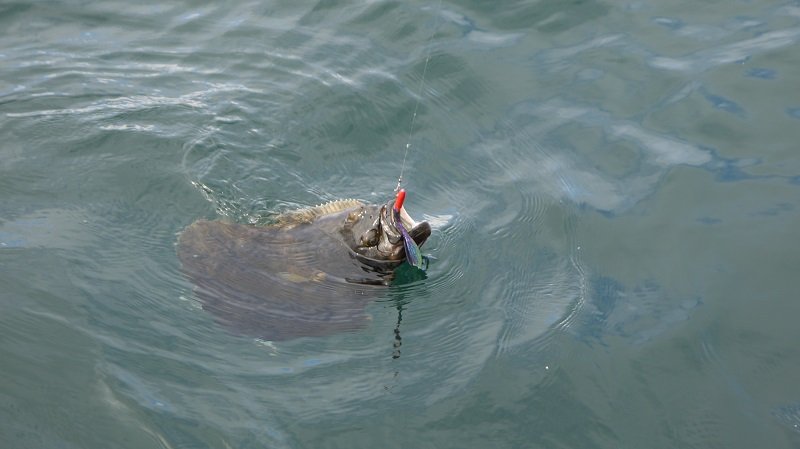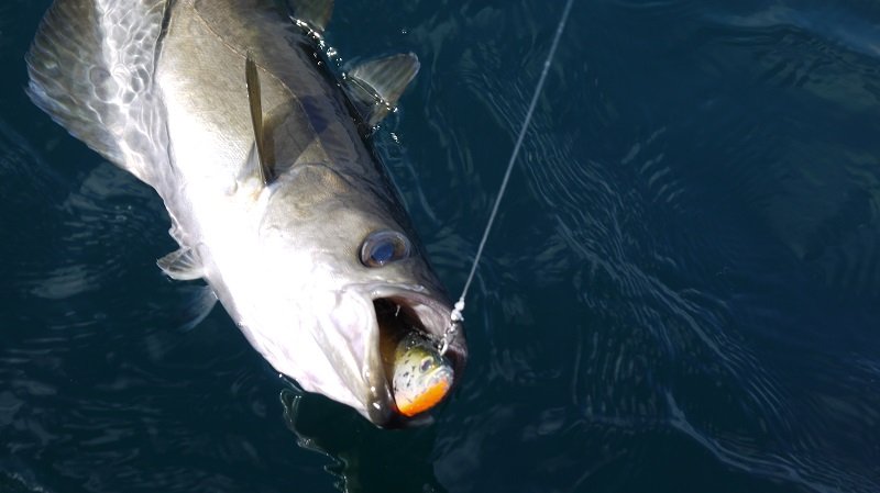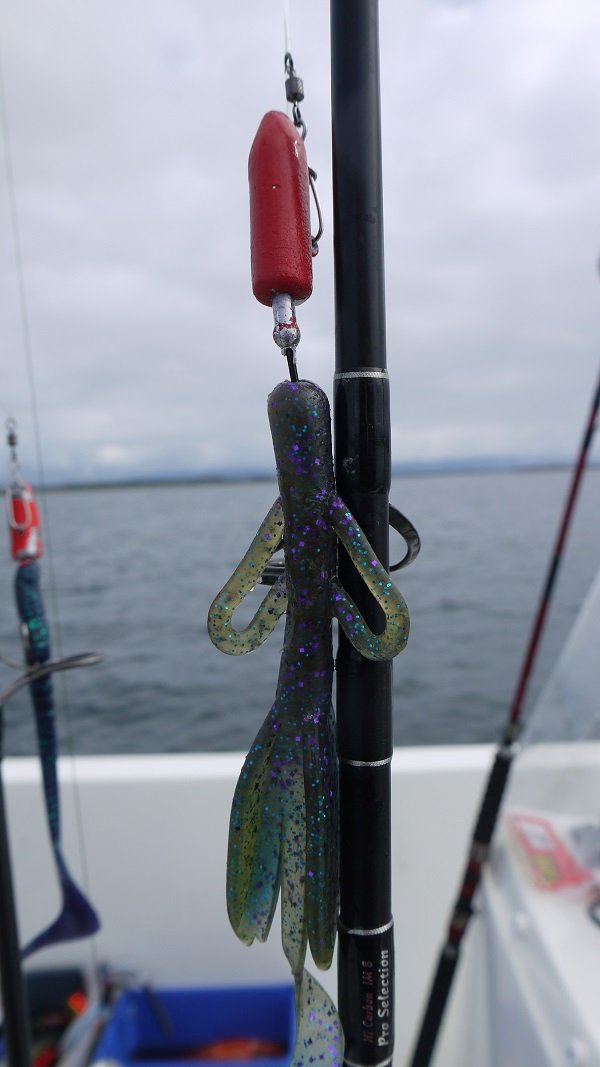 …měl jsem tam 110g jigtorpedo(to k vůli velkému driftu) a BrushHog Blueberry…naštěstí na „velký“ prut…ale byla to jízda jak na tobogánu:-P