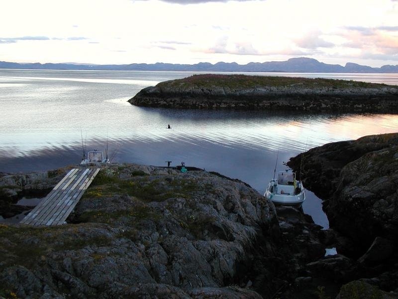 Prídeš z Bakkanu priamo k chatke.Je to asi v strede ostrovov.Na fotke je v ľavo Bakkan a v pravo elektrárne.