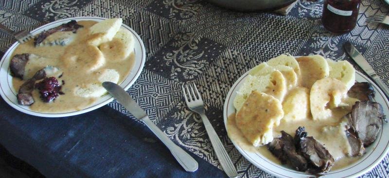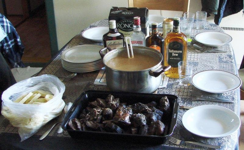 Jeden z naší party vyrábí do Norska multivitamín – 5 kg. Jde o vepřový bok – normální a uzený, oba společně vyškvaří, aby byly velké kusy masa. Tento dietní doplněk stravy a náš chleba zmizí nejdříve.