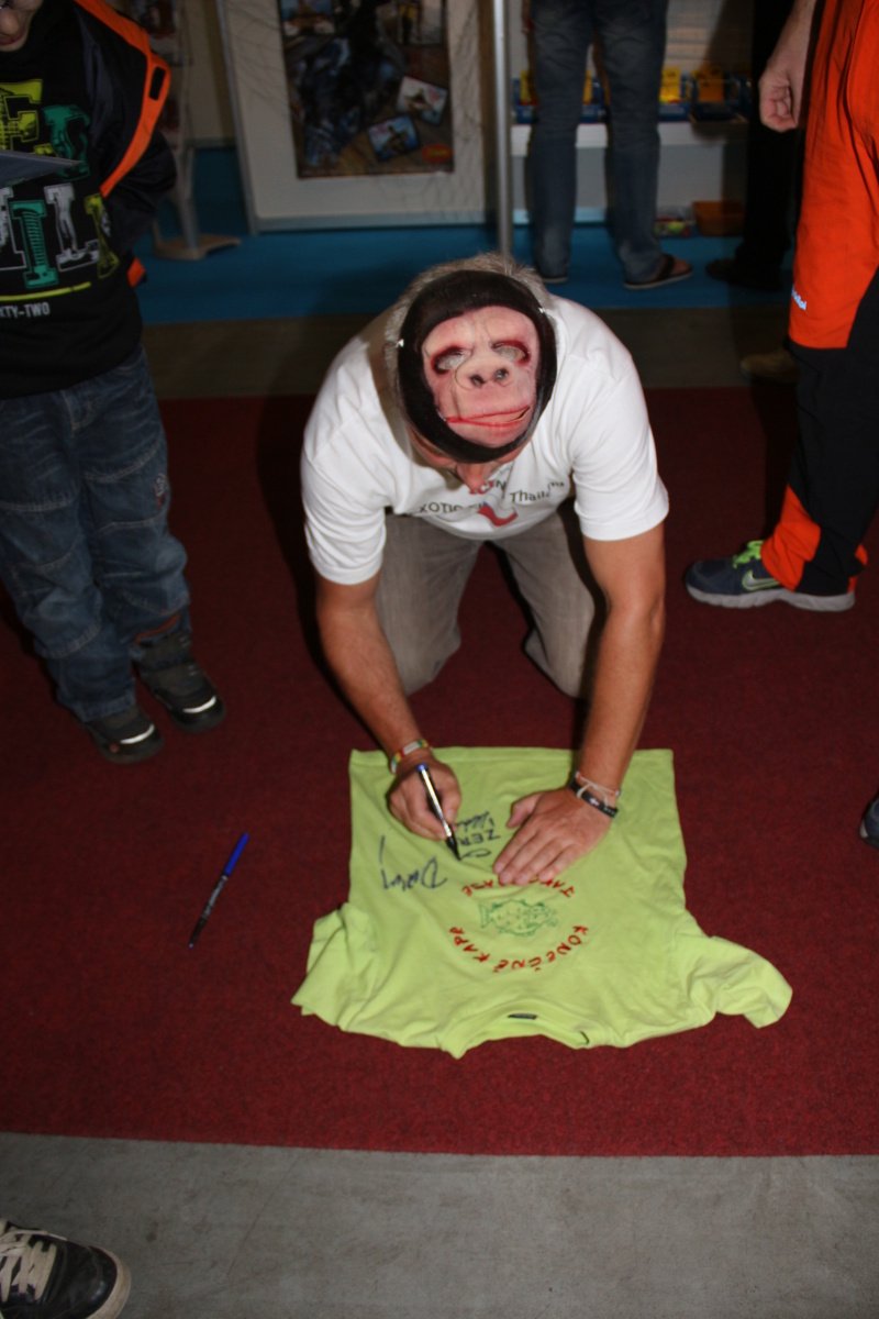 …před pultem se podepisovala opice…