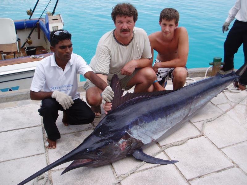 2004: ostrov Paradise Island, výlet na půl dne, blue marlin 310 cm, 300 kg a sailfish kolem 2 metrů, tento puštěn, tehdy tam chráněn.