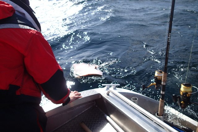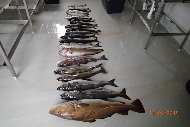 Vše se řídilo předpovědí a čekáním na lepší počasí. Bohužel, i když byla lepší předpověď, tak byla často velmi nepřesná a stejně došlo ke změně – k horšímu. Ve fjordu se dalo chytat i ve větším větru, ale tam nebyly ryby. Pouze náhodné úlovky. Polaci byly vesměs nevytření a tak jejich aktivita nebyla velká. Na místech, kdy jindy chytáme polaky ve velkém množství přišel jeden, dva záběry a dost. Obecňačky byly tak do sedmdesáti cm a nebylo jich mnoho. Předposlední den se částečně uklidnil vítr a my zkusili vyjet na otevřené moře. Trefili jsme kelery vel. mezi 50-75 cm. pod nimi i několik větších obecňaček tak do jednoho metru, jednu pěknou jednoskvrnku. Celý týden jsme objížděli Averoy a hledali místa pro chytání za břehu. Polaky se docela dařilo chytat, ale chtělo to vytrvalost a trpělivost. Některé úspěšnější výpravy za břehu bylo chyceno i cca 25 polaků ve třech lidech. Našli jsme lagunu kde se nám povedlo chytit 5 kelerů cca 70 cm velkých ze břehu. K tom i obecňačky okolo 70 cm. Poslední den před odjezdem najeli makrely. Přikládám fotky. Omlouvám se za kvalitu některých, bohužel jsem měl špatně nastaven foťák a nebylo příliš příležitostí to vylepšit.
